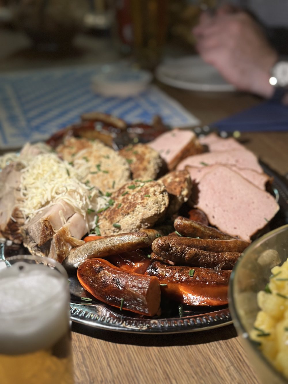 We start our beer extravaganza in the heart of Munich’s Marienplatz, where we are but a short walk to our first stop. Here we will sample one of Munich’s younger beers – and when we say ‘young beer’ in Munich, we mean the brewery is from the 19th century! Take in the cozy ambience of a typical Bavarian Wirtshaus, as you savour a glass of our famous liquid gold while sharing a traditional starter platter.